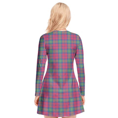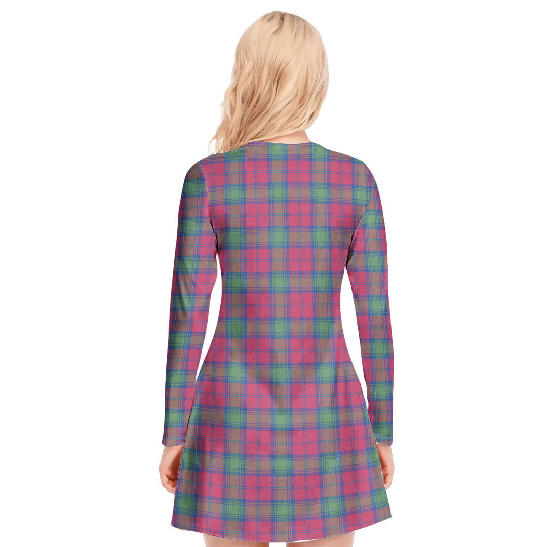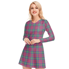 Lindsay Ancient Tartan Plaid V-neck Long Sleeve Dress