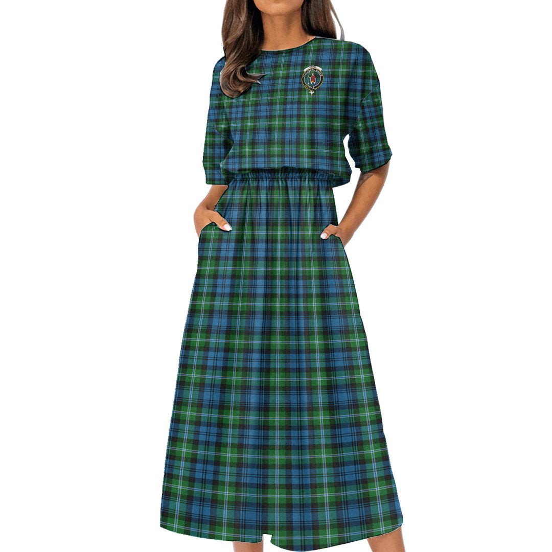 Lyon Tartan Plaid Tartan Crest Women's Elastic Waist Dress
