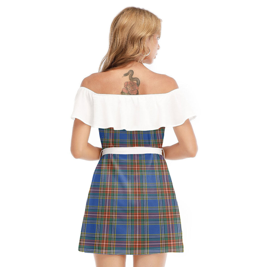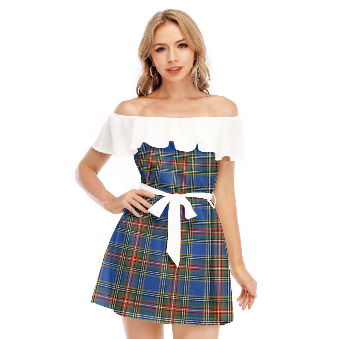 MacBeth Ancient Tartan Plaid Off-shoulder Dress With Ruffle
