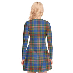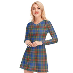 MacBeth Ancient Tartan Plaid V-neck Long Sleeve Dress