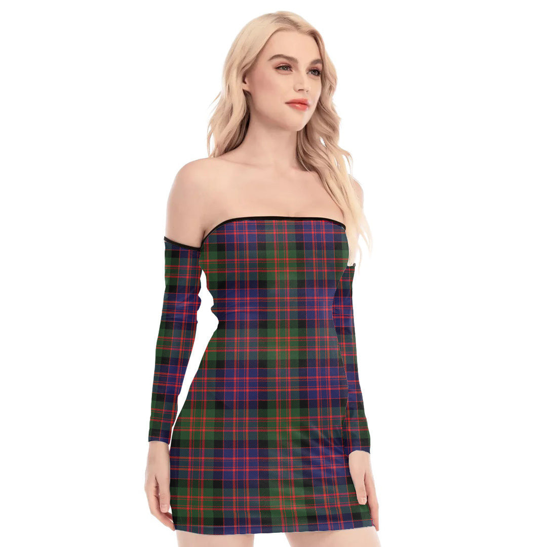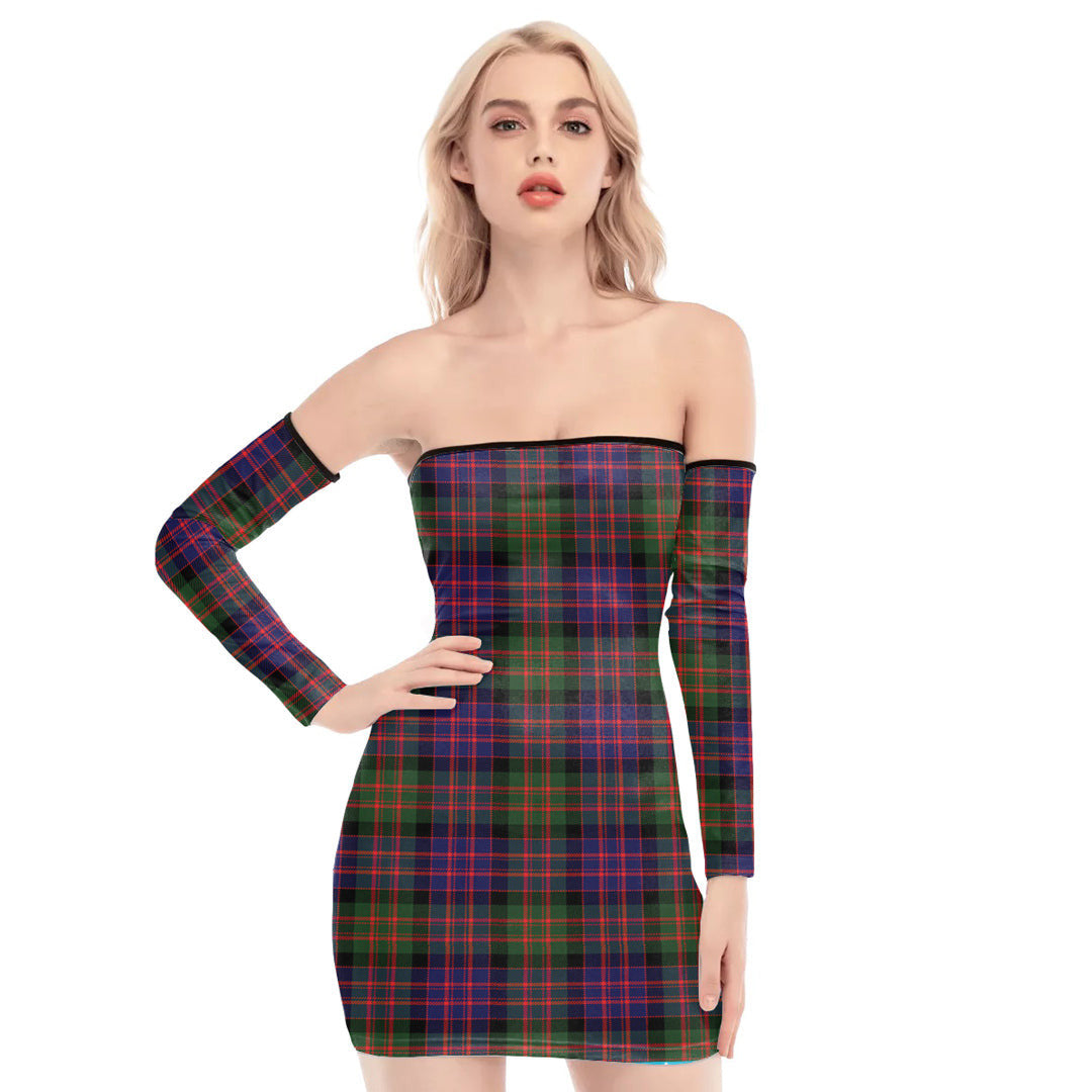 MacDonald Modern Tartan Plaid Off-Shoulder Back Lace-Up Dress