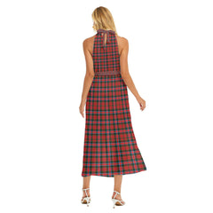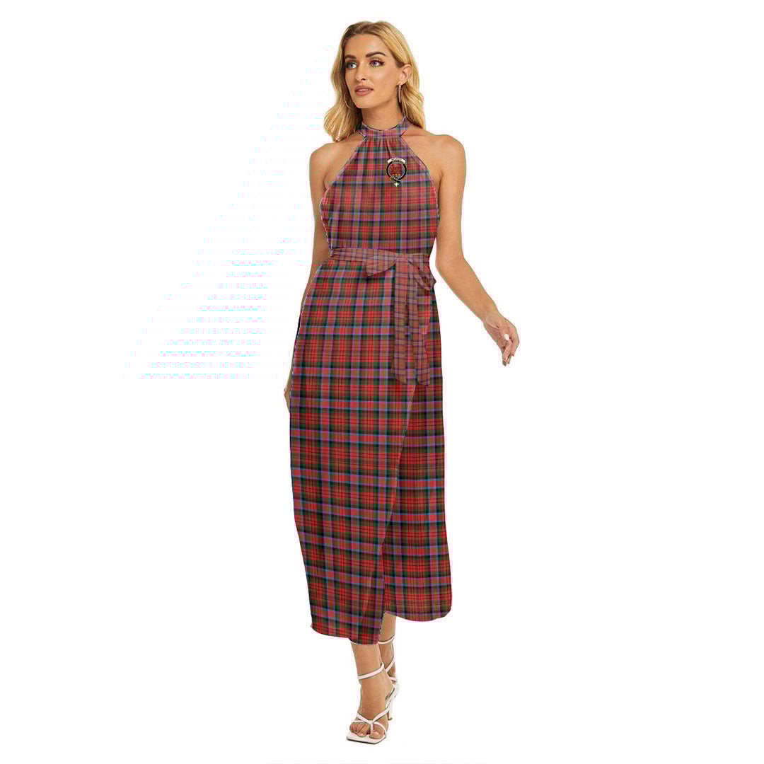 MacDuff Modern Tartan Crest Wrap Hem Belted Halter Dress