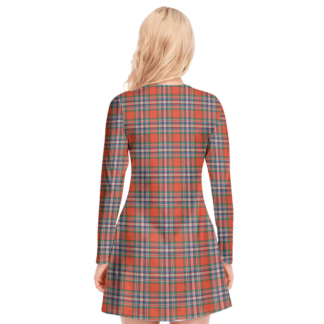 MacFarlane Ancient Tartan Plaid V-neck Long Sleeve Dress