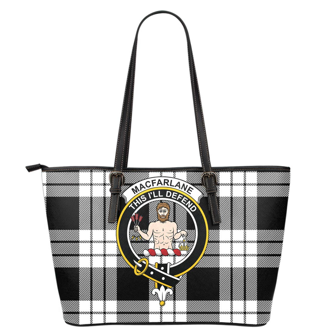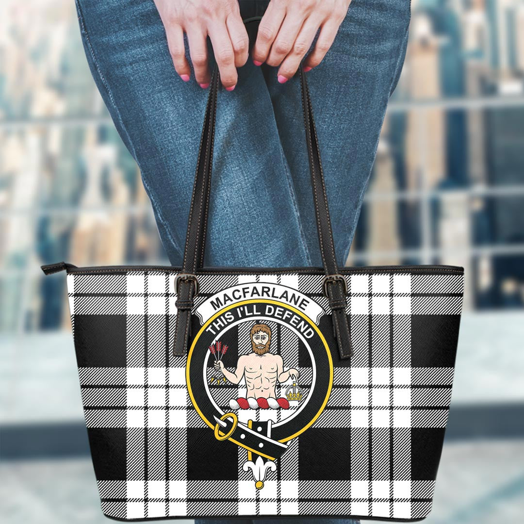 MacFarlane Black & White Ancient Tartan Crest Leather Tote