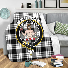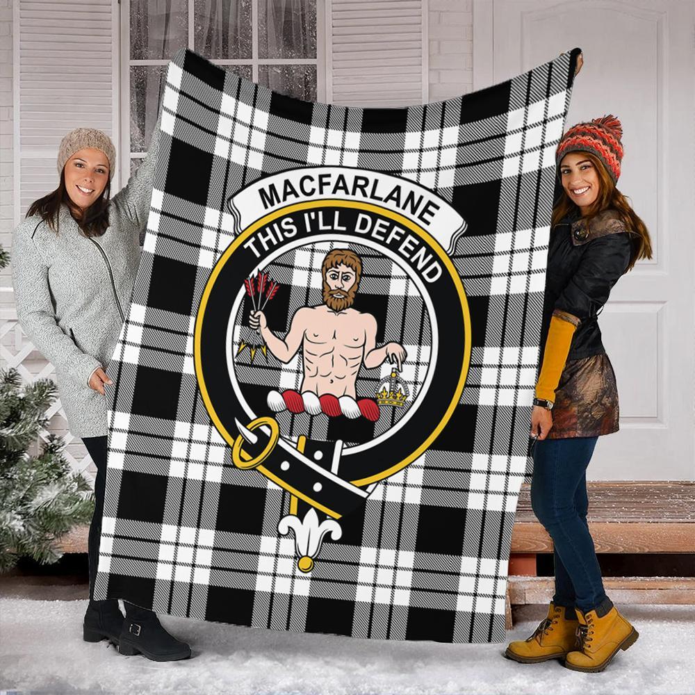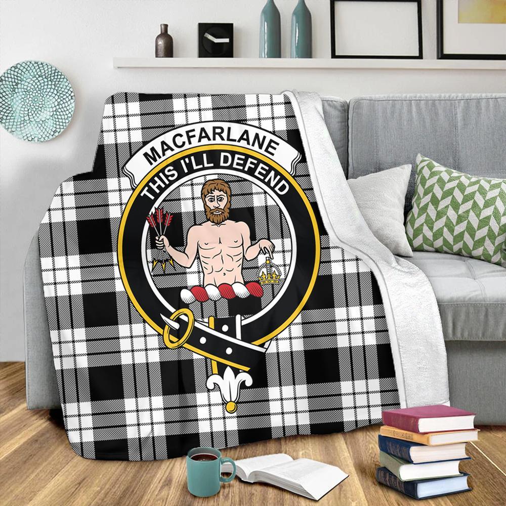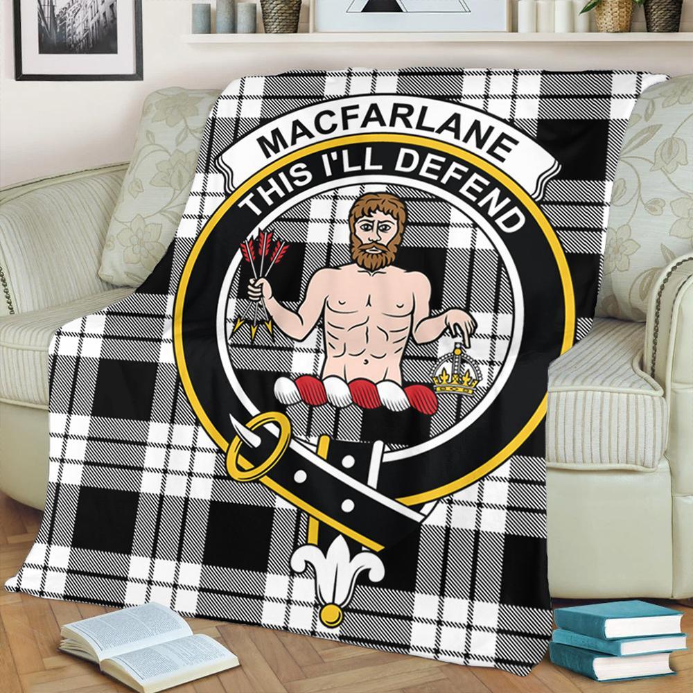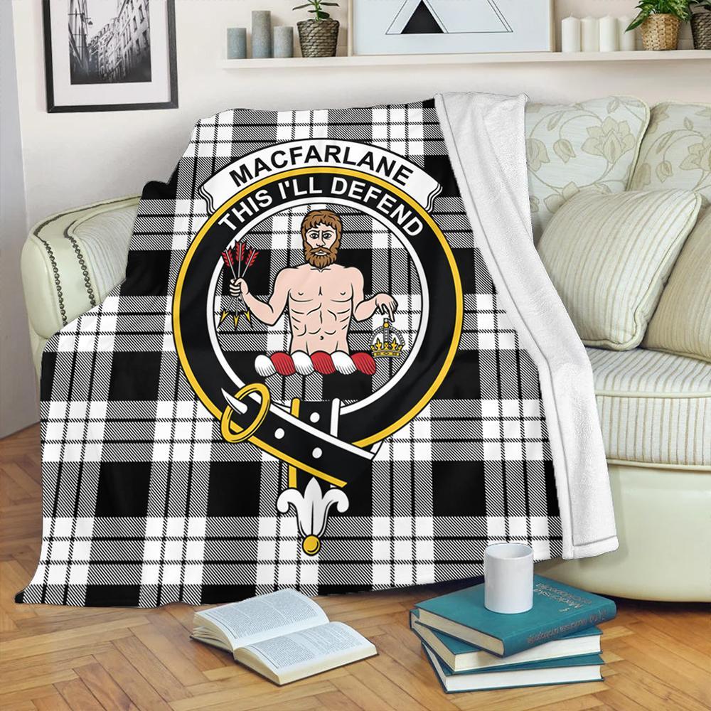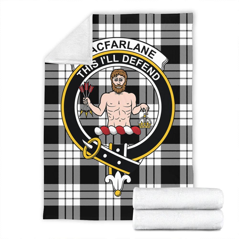 MacFarlane Black & White Ancient Tartan Crest Premium Blanket