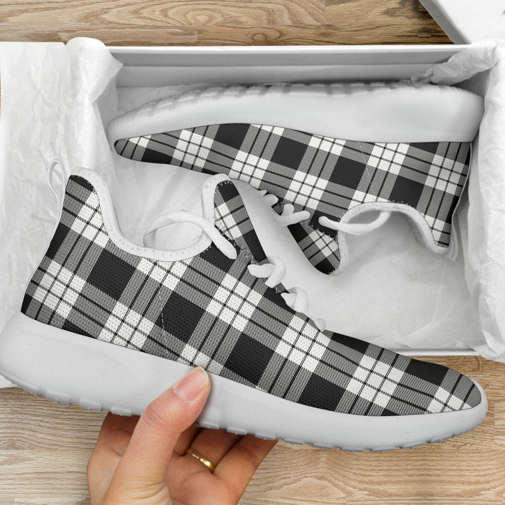 MacFarlane Black & White Ancient Tartan Plaid Mesh Knit Sneakers