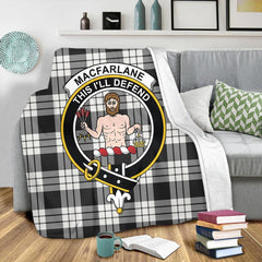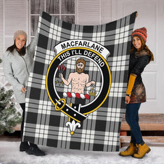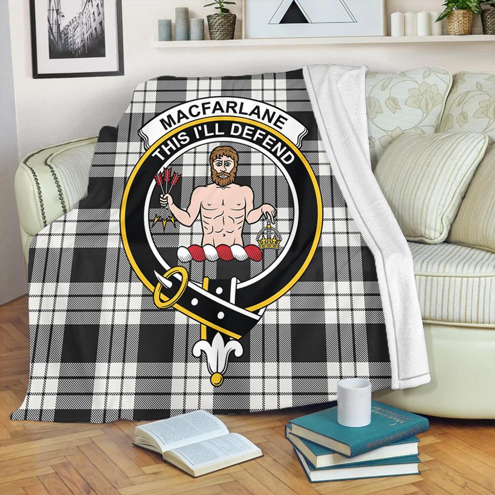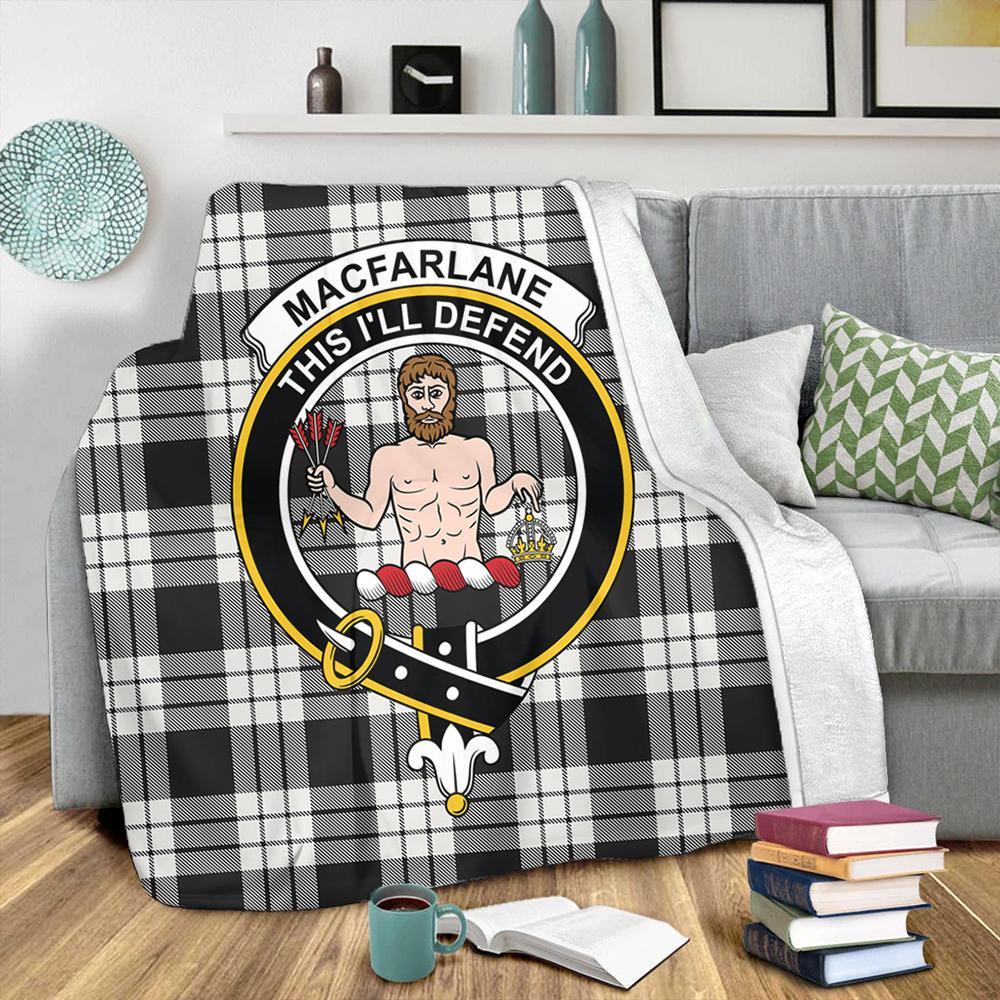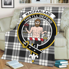 MacFarlane Black & White Tartan Crest Premium Blanket
