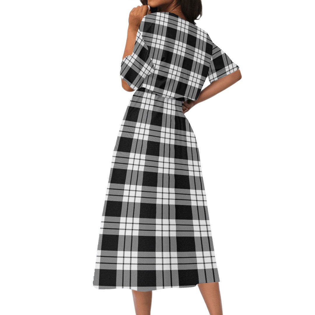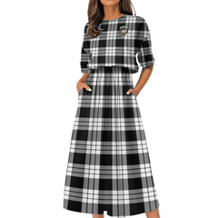 MacFarlane Black White Tartan Crest Women's Elastic Waist Dress