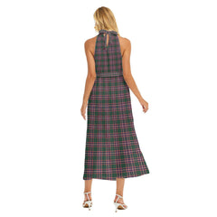 MacFarlane Hunting Modern Tartan Crest Wrap Hem Belted Halter Dress