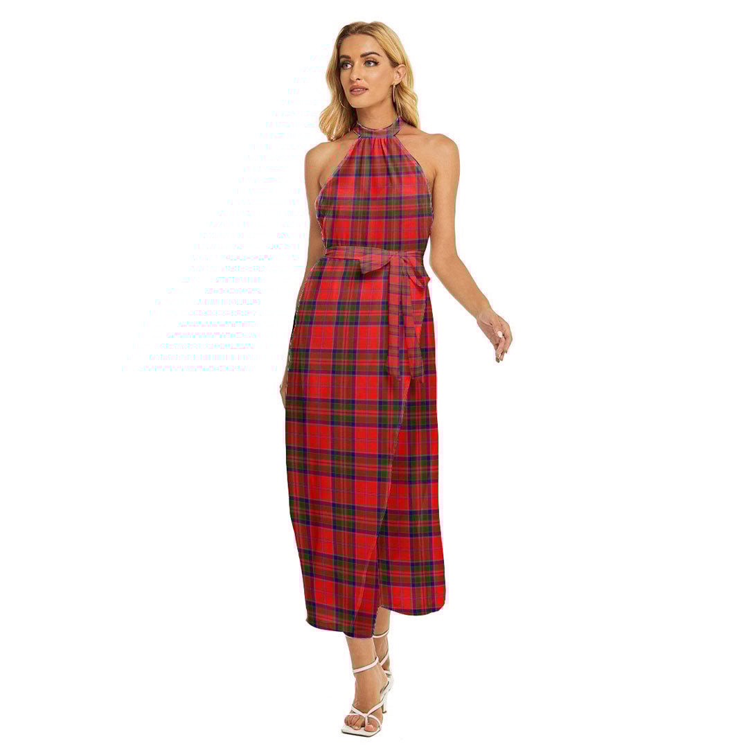 MacGillivray Modern Tartan Plaid Wrap Hem Belted Halter Dress