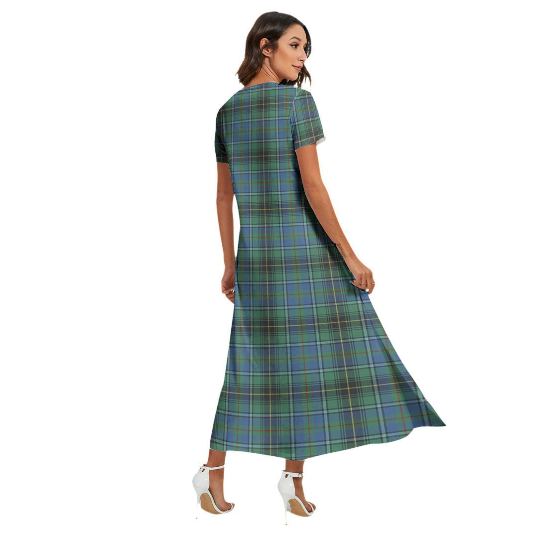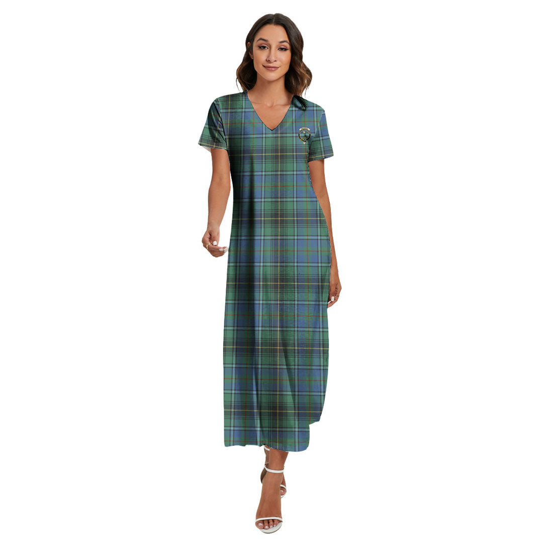 MacInnes Ancient Tartan Crest V-neck Dress Side Slit