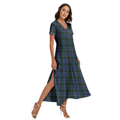 MacInnes Modern Tartan Plaid V-neck Dress Side Slit