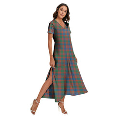 MacIntyre Ancient Tartan Plaid V-neck Dress Side Slit