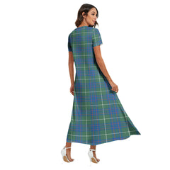 MacIntyre Hunting Ancient Tartan Crest V-neck Dress Side Slit