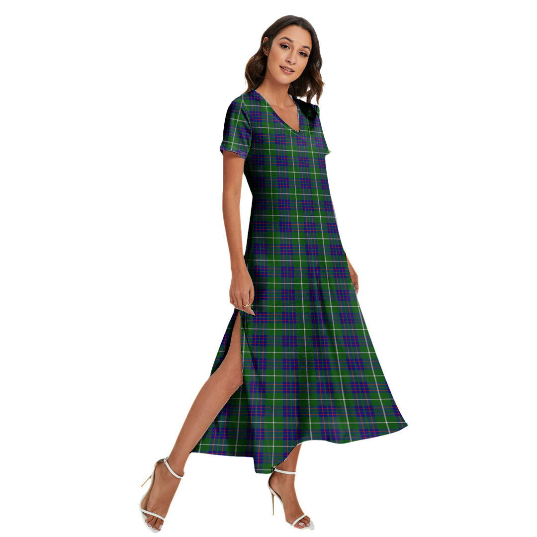MacIntyre Hunting Modern Tartan Plaid V-neck Dress Side Slit