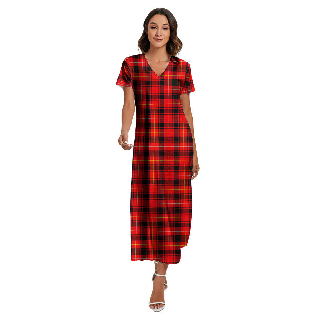 MacIver Modern Tartan Plaid V-neck Dress Side Slit