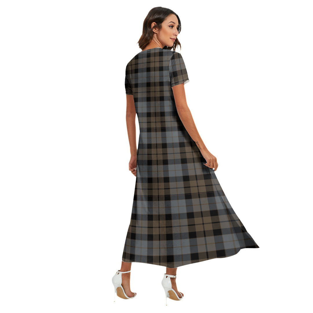 MacKay Weathered Tartan Crest V-neck Dress Side Slit