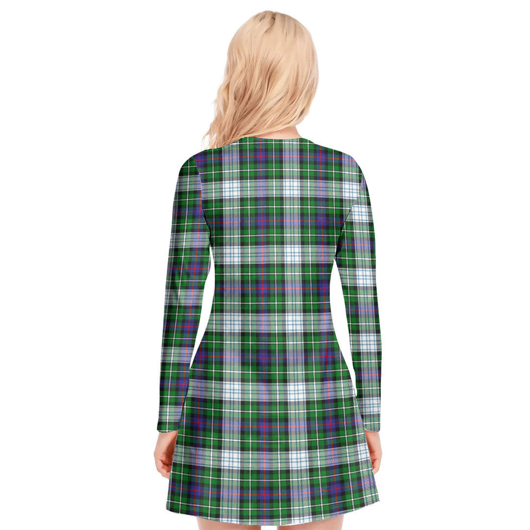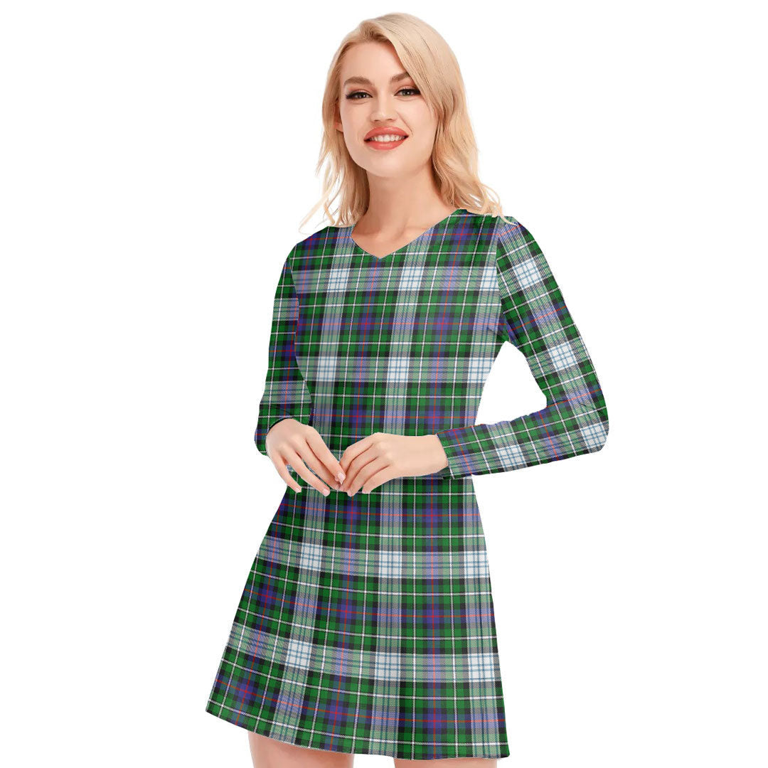 MacKenzie Dress Modern Tartan Plaid V-neck Long Sleeve Dress