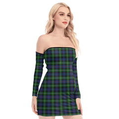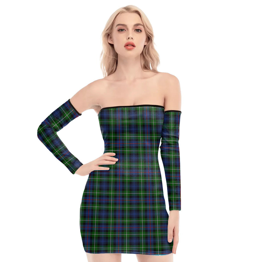 MacKenzie Modern Tartan Plaid Off-Shoulder Back Lace-Up Dress