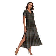 MacKenzie Weathered Tartan Plaid V-neck Dress Side Slit