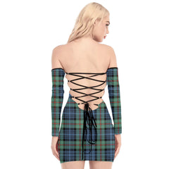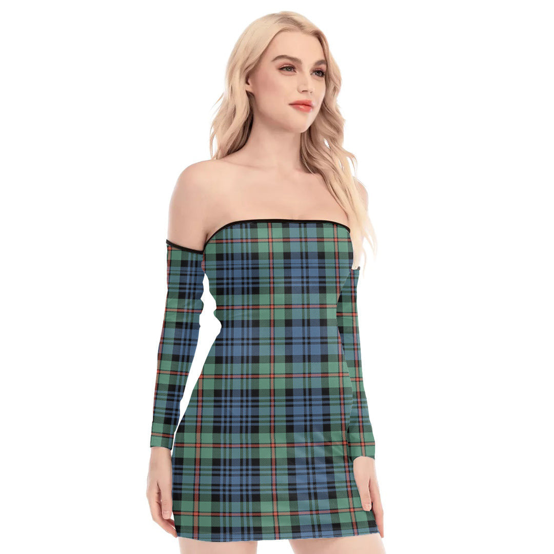 MacKinlay Ancient Tartan Plaid Off-Shoulder Back Lace-Up Dress