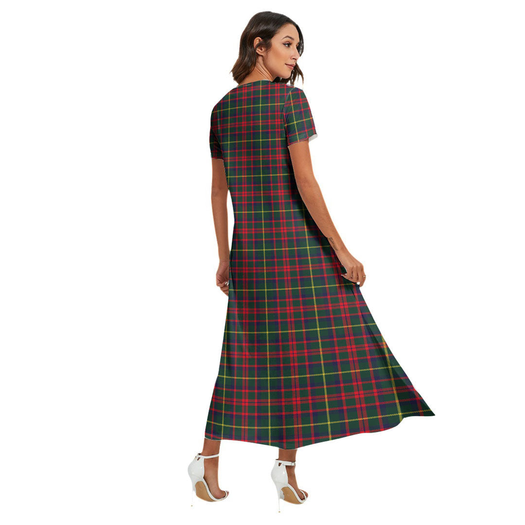 MacKintosh Hunting Modern Tartan Crest V-neck Dress Side Slit