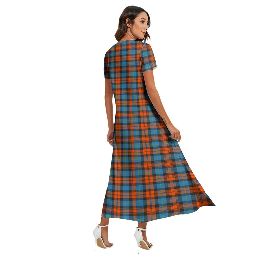 MacLachlan Ancient Tartan Crest V-neck Dress Side Slit