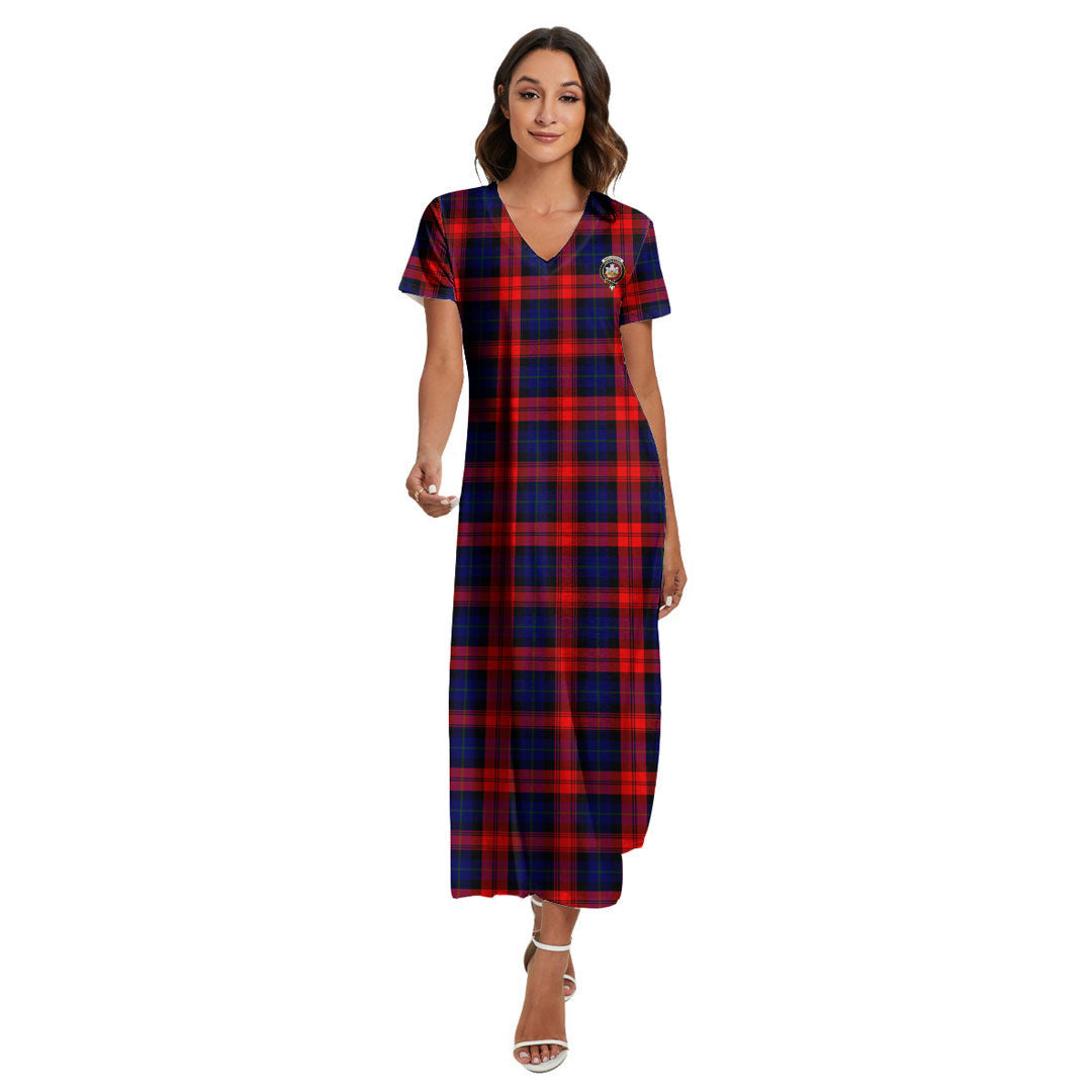 MacLachlan Modern Tartan Crest V-neck Dress Side Slit