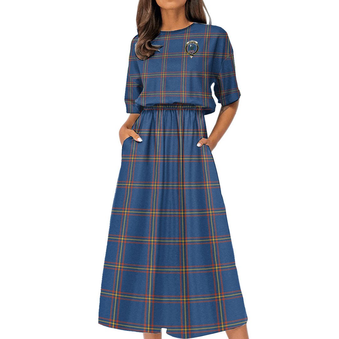 MacLaine of Loch Buie Hunting Ancient Tartan Crest Women's Elastic Waist Dress