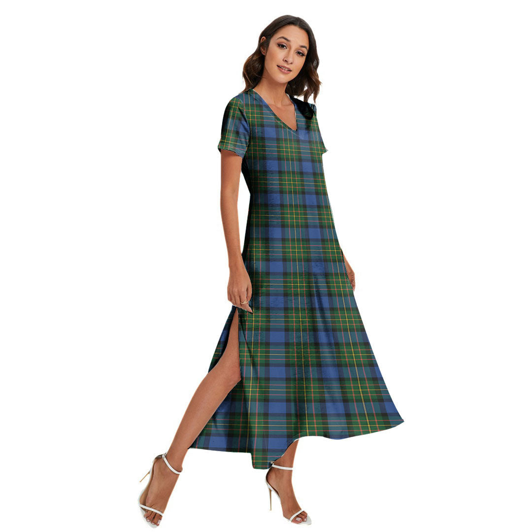MacLaren Ancient Tartan Plaid V-neck Dress Side Slit