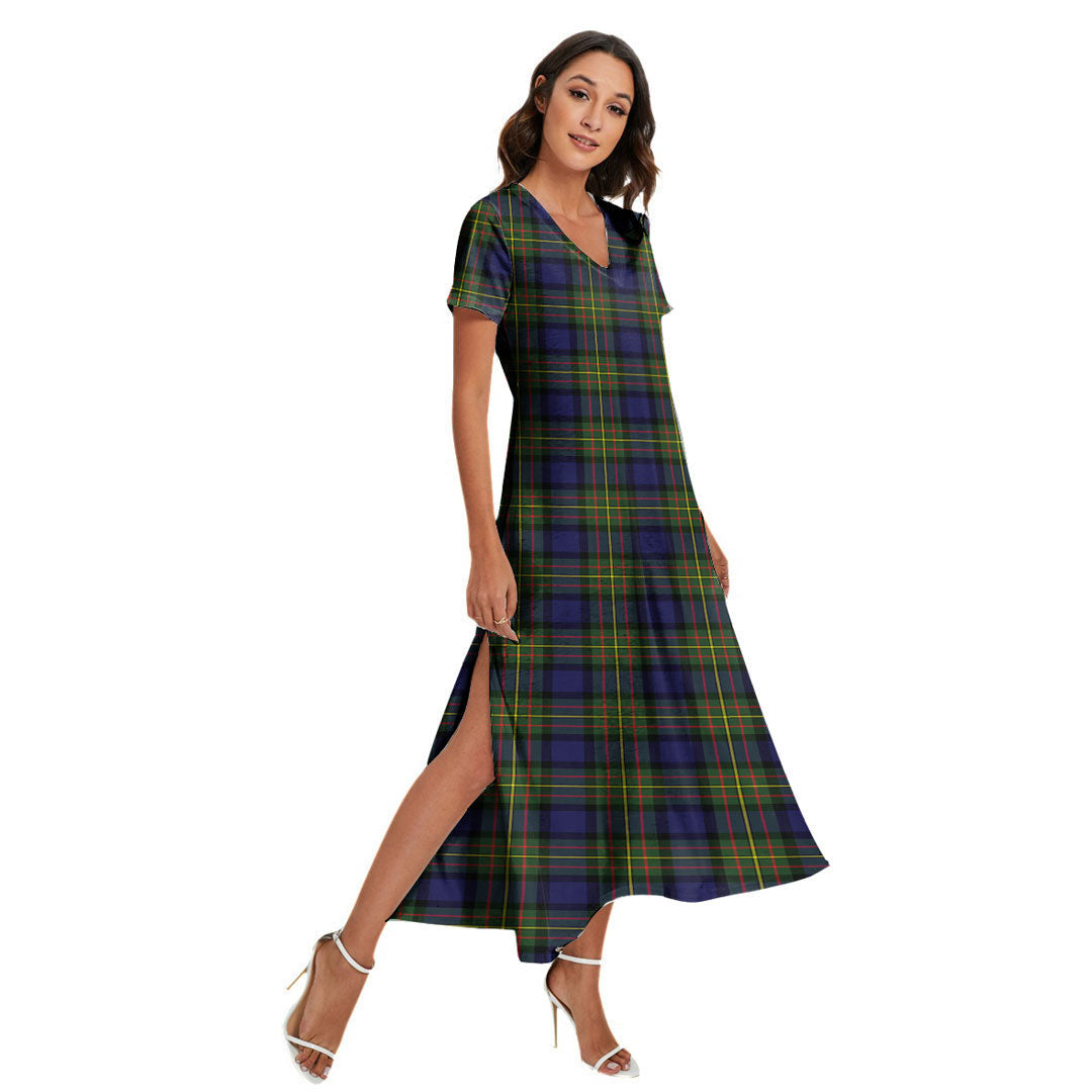 MacLaren Modern Tartan Plaid V-neck Dress Side Slit