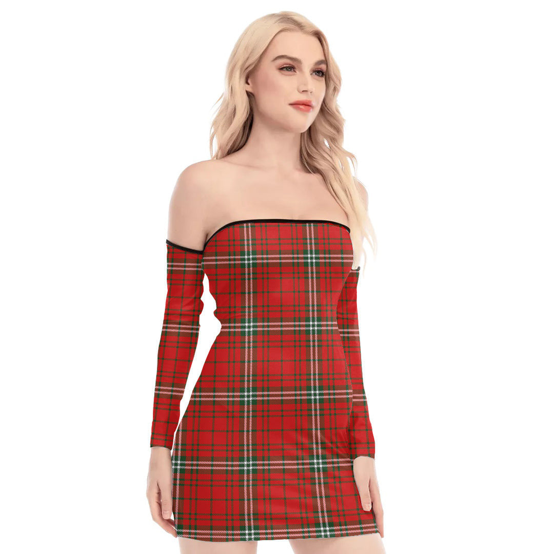 MacLay Modern Tartan Plaid Off-Shoulder Back Lace-Up Dress