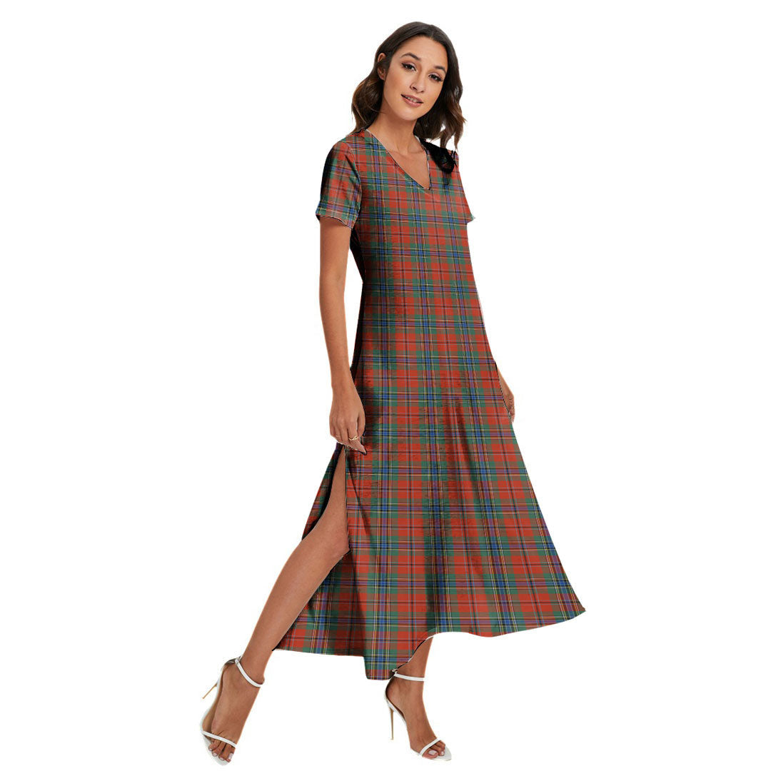 MacLean of Duart Ancient Tartan Plaid V-neck Dress Side Slit