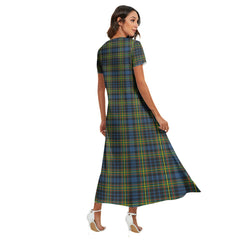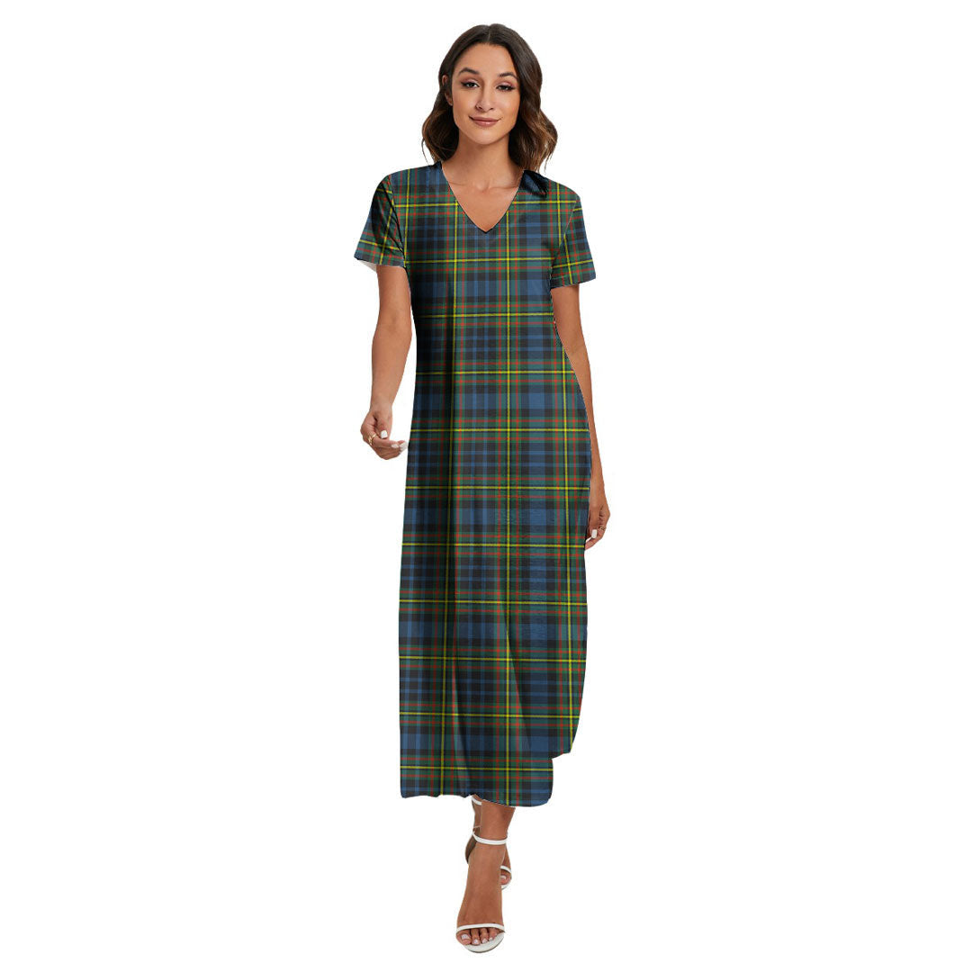 MacLellan Ancient Tartan Plaid V-neck Dress Side Slit