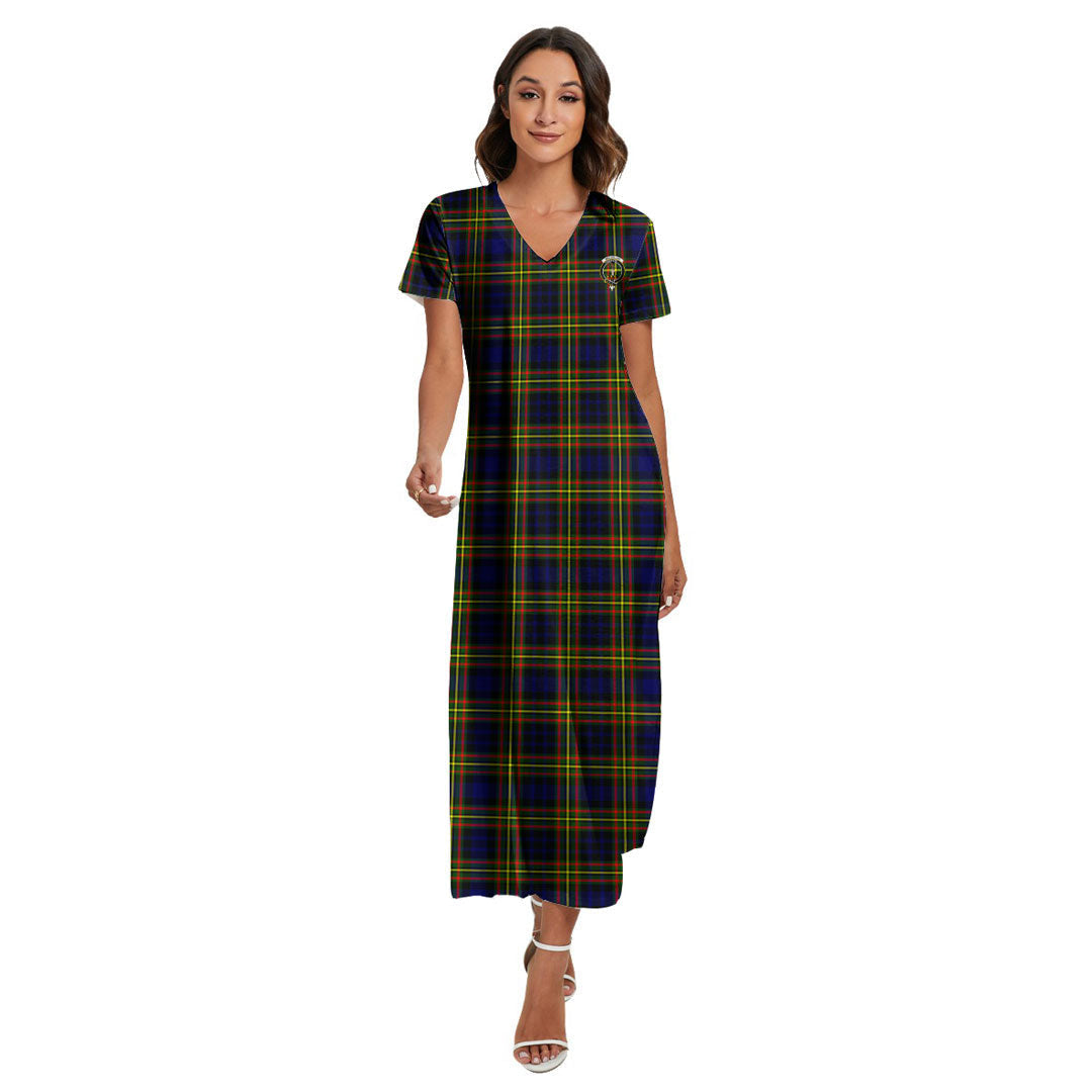 MacLellan Modern Tartan Crest V-neck Dress Side Slit
