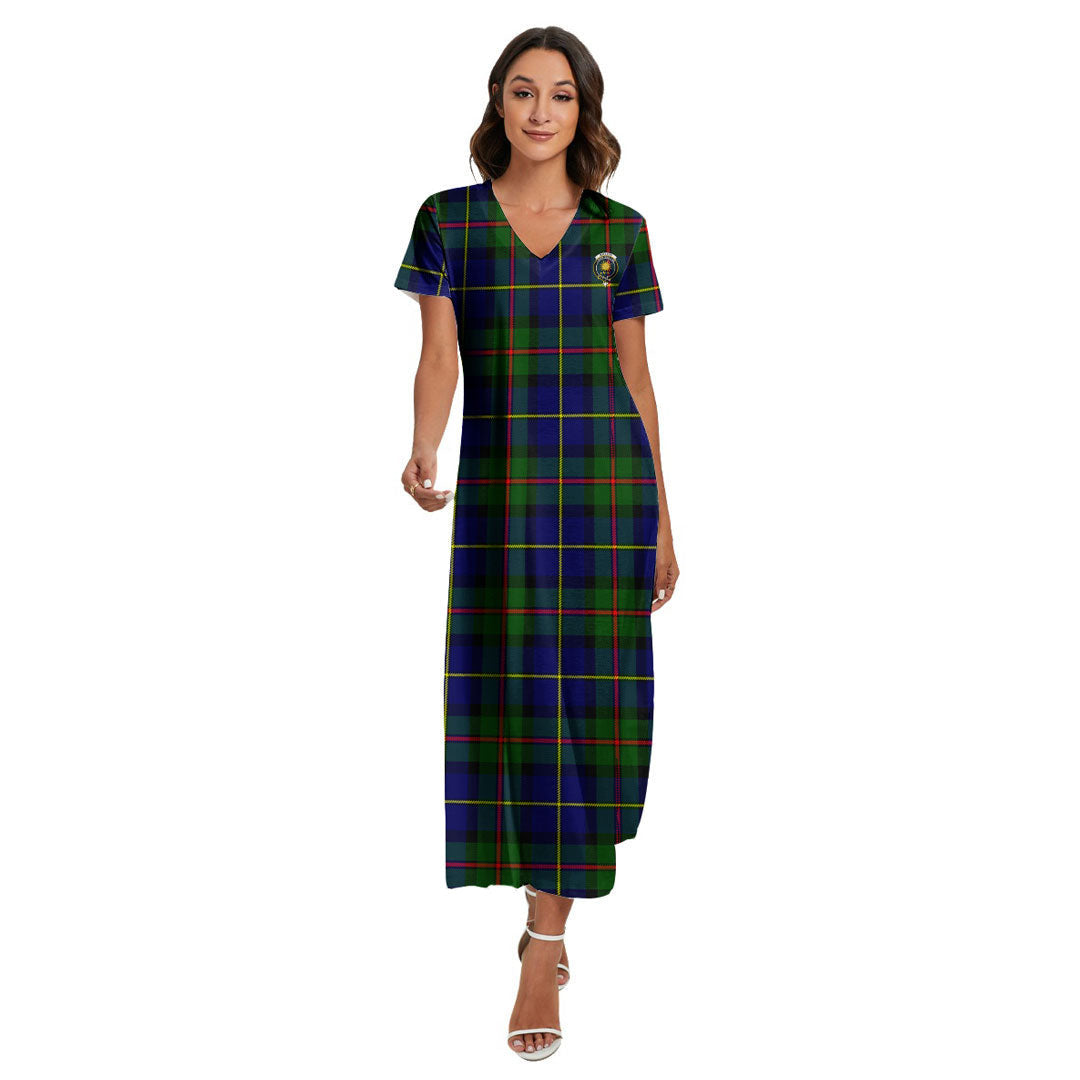 MacLeod of Harris Modern Tartan Crest V-neck Dress Side Slit