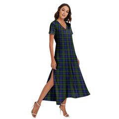 MacLeod of Harris Modern Tartan Plaid V-neck Dress Side Slit
