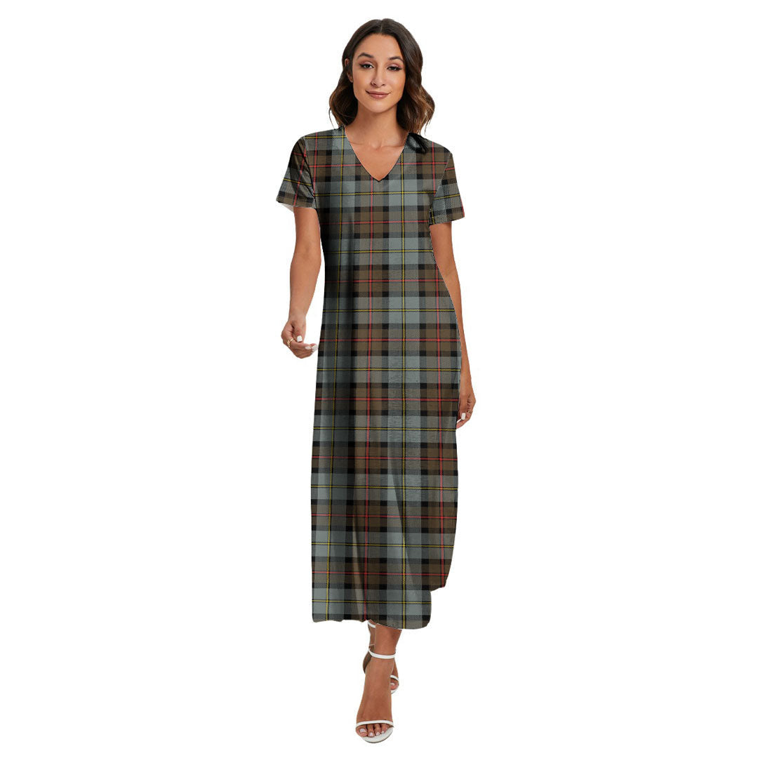 MacLeod of Harris Weathered Tartan Plaid V-neck Dress Side Slit