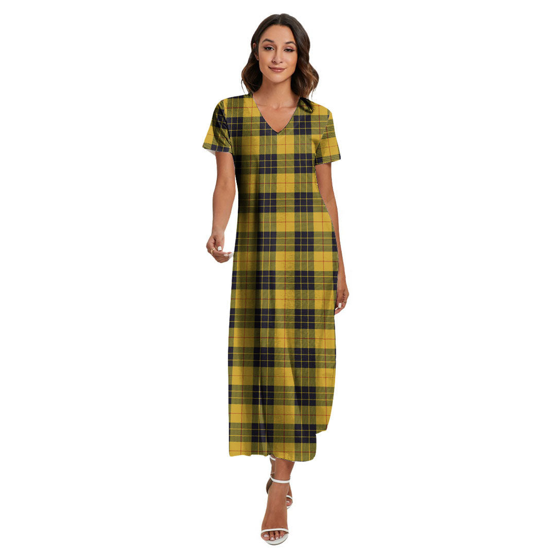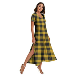 MacLeod of Lewis Ancient Tartan Plaid V-neck Dress Side Slit