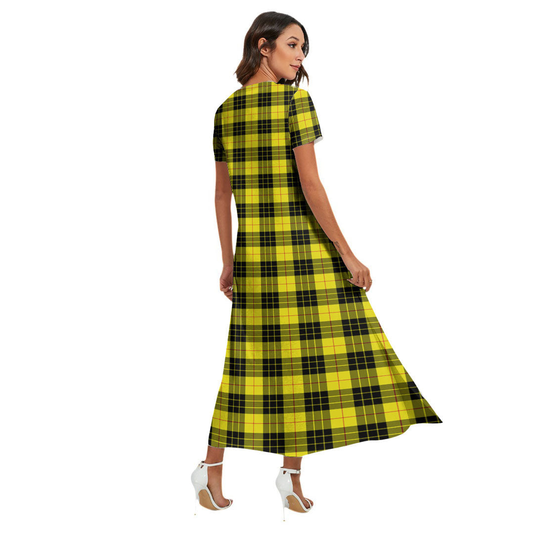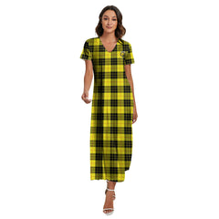 MacLeod of Lewis Modern Tartan Crest V-neck Dress Side Slit