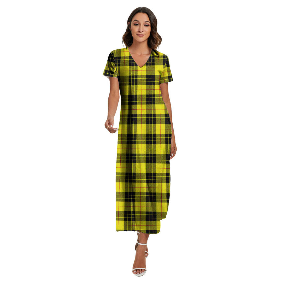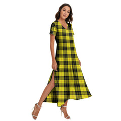 MacLeod of Lewis Modern Tartan Plaid V-neck Dress Side Slit