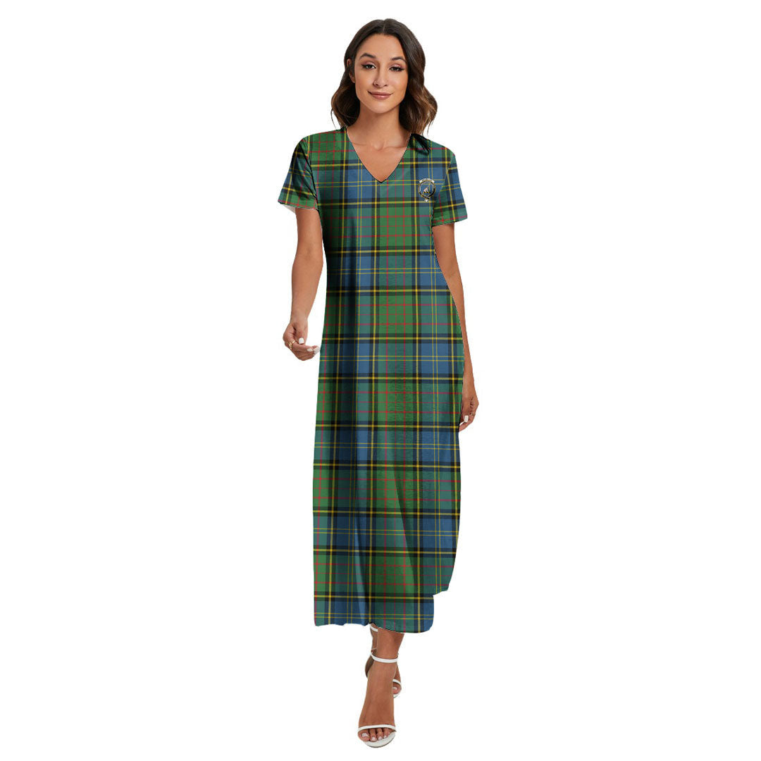 MacMillan Hunting Ancient Tartan Crest V-neck Dress Side Slit
