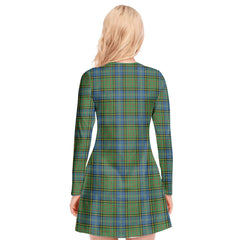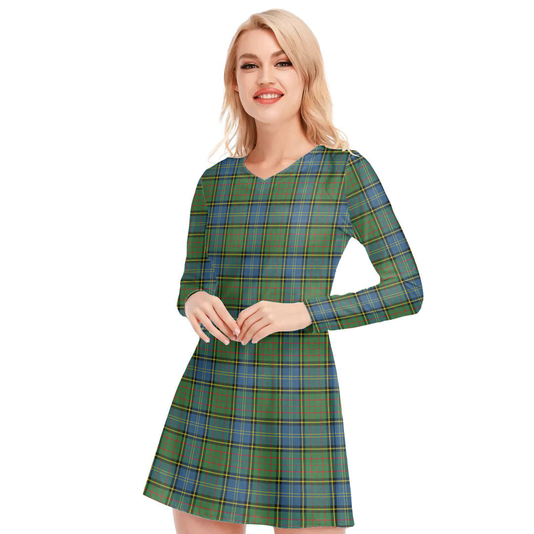 MacMillan Hunting Ancient Tartan Plaid V-neck Long Sleeve Dress