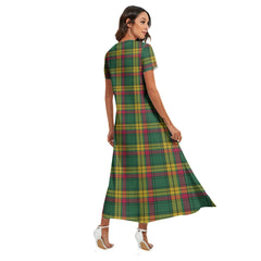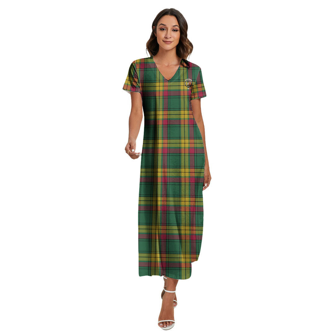MacMillan Old Ancient Tartan Crest V-neck Dress Side Slit