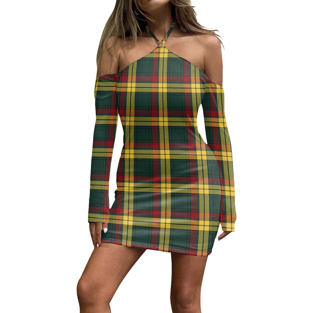 MacMillan Old Modern Tartan Plaid Halter Lace-up Dress