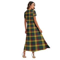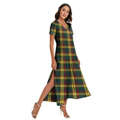 MacMillan Old Modern Tartan Plaid V-neck Dress Side Slit