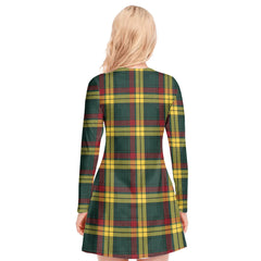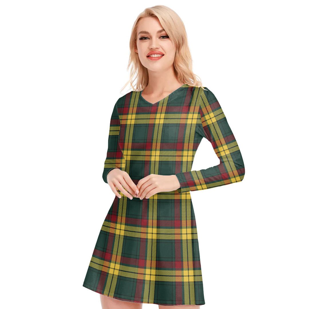 MacMillan Old Modern Tartan Plaid V-neck Long Sleeve Dress