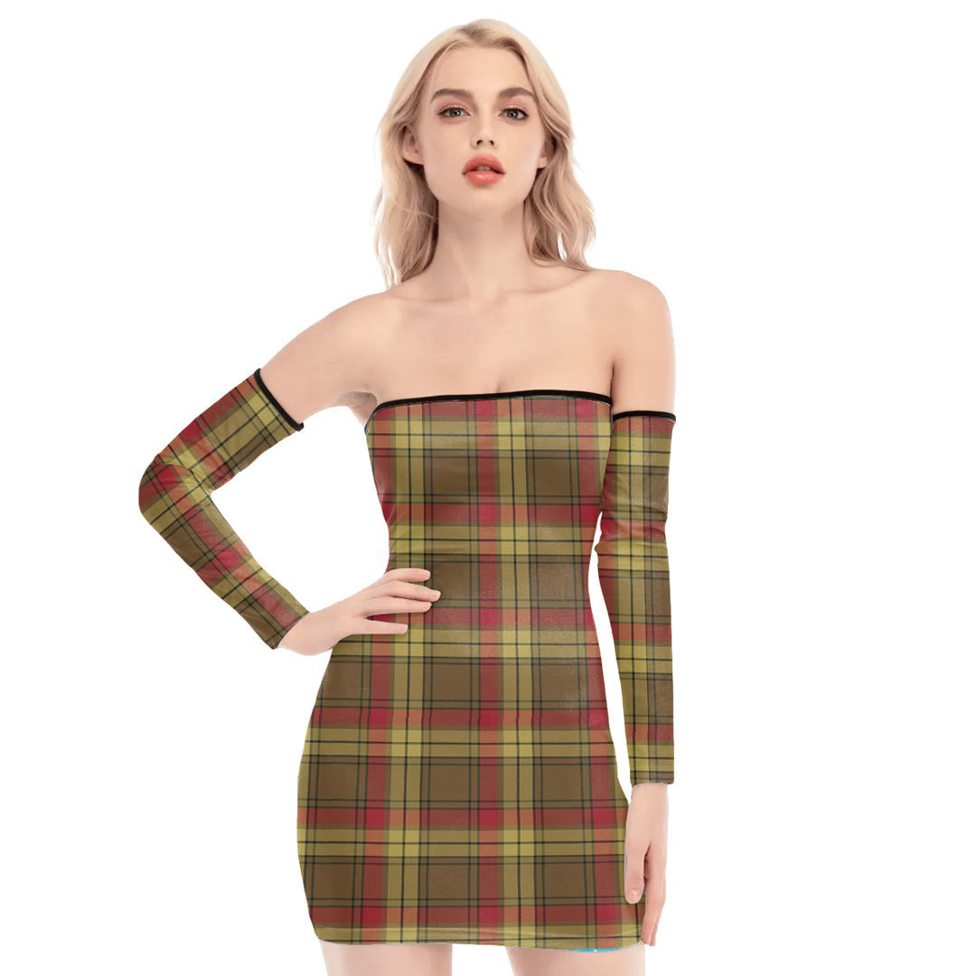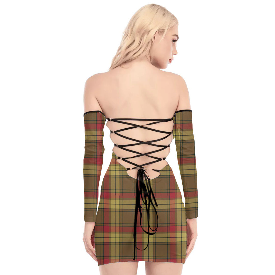 MacMillan Old Weathered Tartan Plaid Off-Shoulder Back Lace-Up Dress