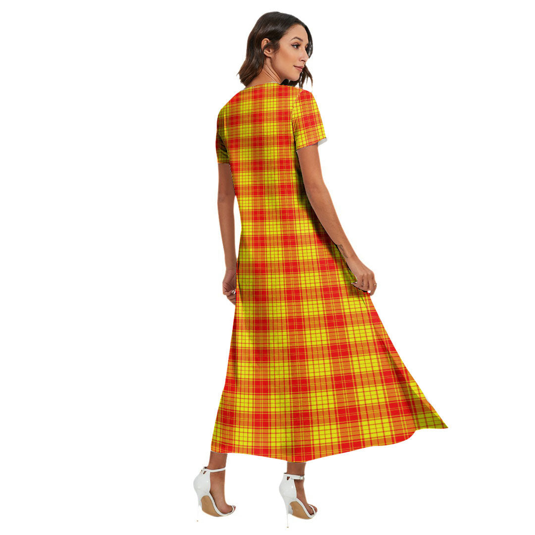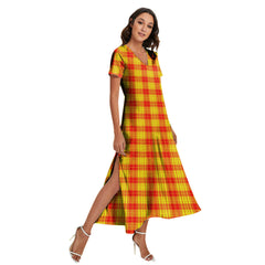 MacMillan Tartan Plaid Tartan Plaid V-neck Dress Side Slit