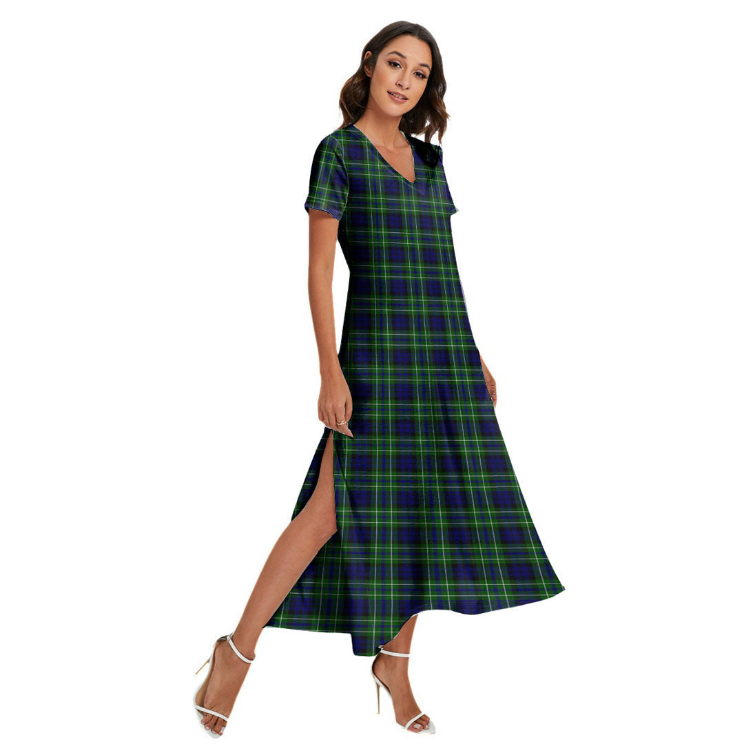 MacNeil of Colonsay Modern Tartan Plaid V-neck Dress Side Slit